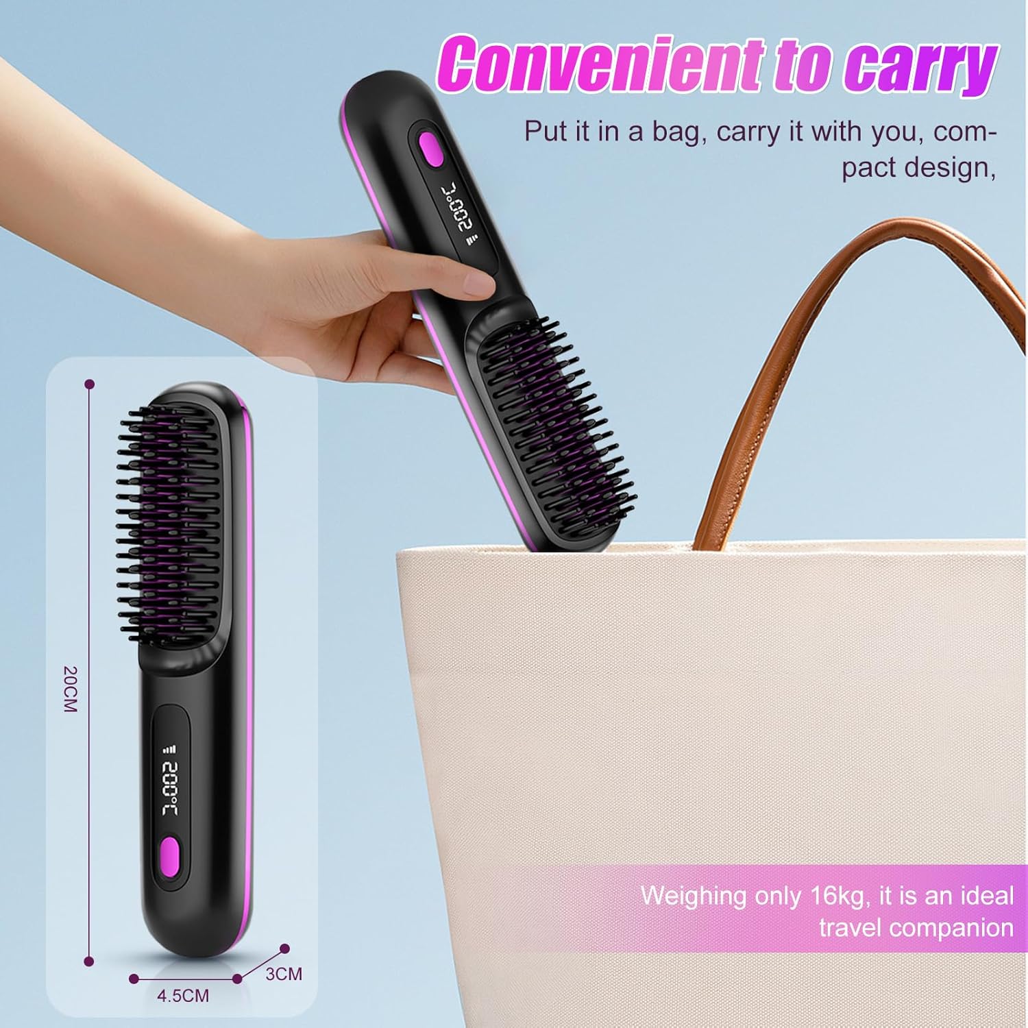 ¿Te imaginas poder alisar tu cabello sin depender de un enchufe? Con nuestro cepillo alisador inalámbrico, eso es una realidad. Este innovador cepillo ha sido diseñado para acompañarte en tu día a día, sin importar dónde estés. Ya sea en la oficina, en casa, durante un viaje o incluso en un evento, podrás retocar tu peinado fácilmente, sin enredos ni cables que te limiten. Si llevas una vida agitada, viajas con frecuencia o simplemente valoras la comodidad, este cepillo se convertirá en tu mejor aliado de belleza. Peinarte ya no requiere enchufes, solo estilo y libertad.